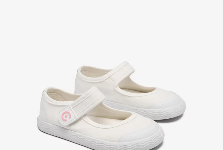 Zapatillas de lona para niño y niña en color blanco. Zapatillas clásicas con ajuste en velcro y puntera reforzada.