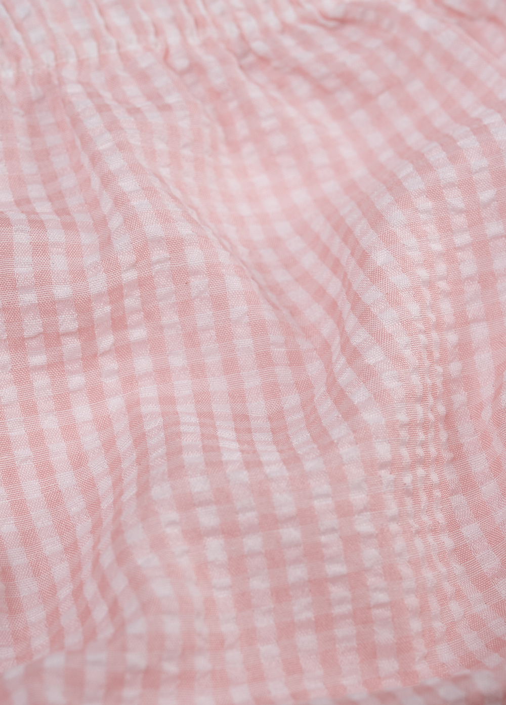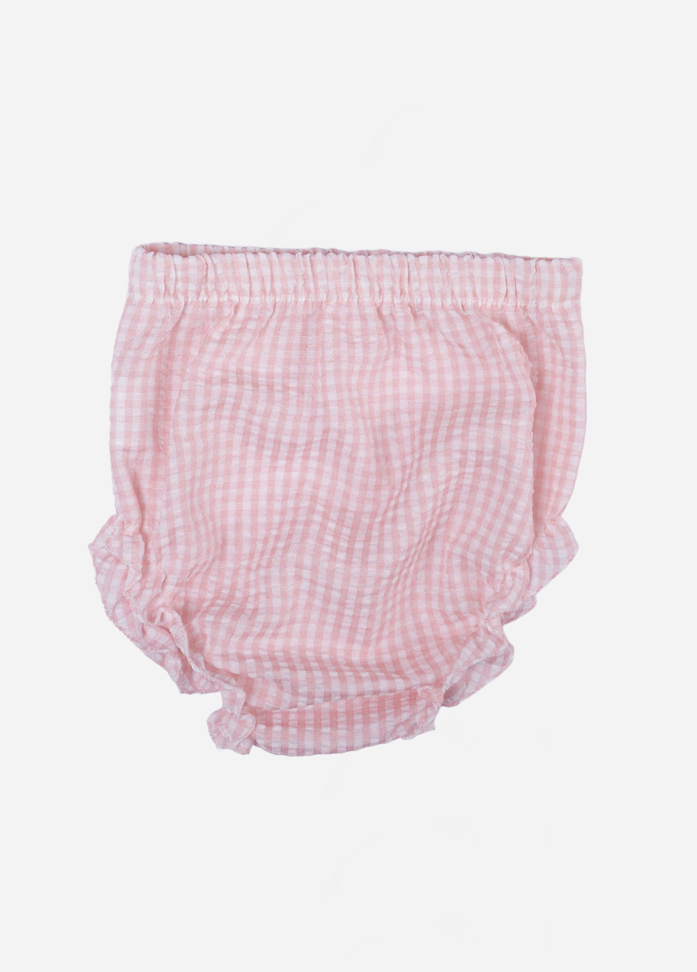 El bombacho a juego, confeccionado en el mismo tejido Vichy, cuenta con elásticos suaves en la cintura y en las piernas, garantizando una sujeción cómoda sin marcar la piel.