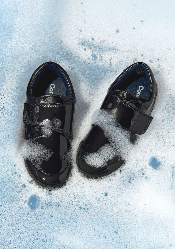 Confeccionadas en piel vacuno lavable con un acabado de alta resistencia que le aporta un tacto liso y extrasuave. Cuenta con plantilla extraíble y forro interior transpirable y absorbente. Su cierre de tira adherente en la parte delantera permite una sujeción perfecta. Además, cuentan con puntera y talón reforzados a prueba de carreras y saltos.