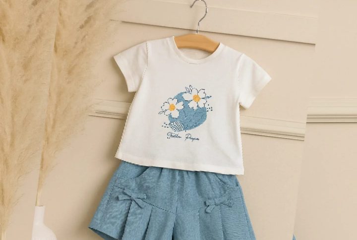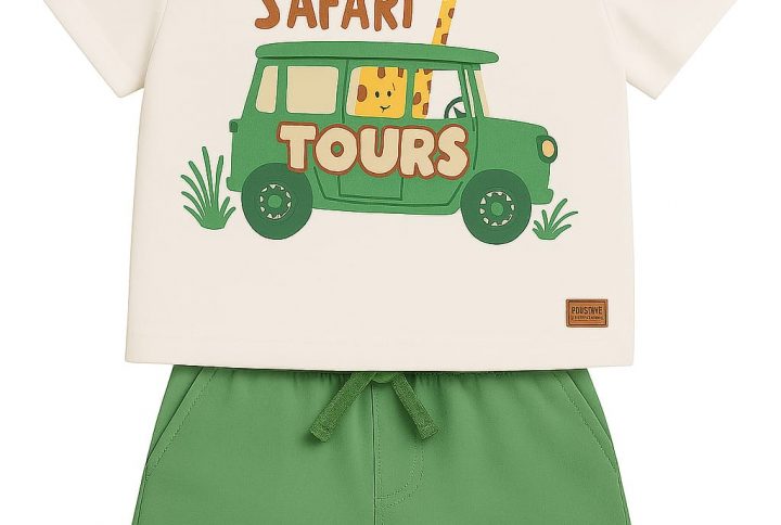 Estilo urbano y comodidad en un solo look. Camiseta blanca de algodón con un divertido estampado de personajes animado y letras modernas, combinada con bermudas tipo cargo en verde oliva, prácticos y frescos.
